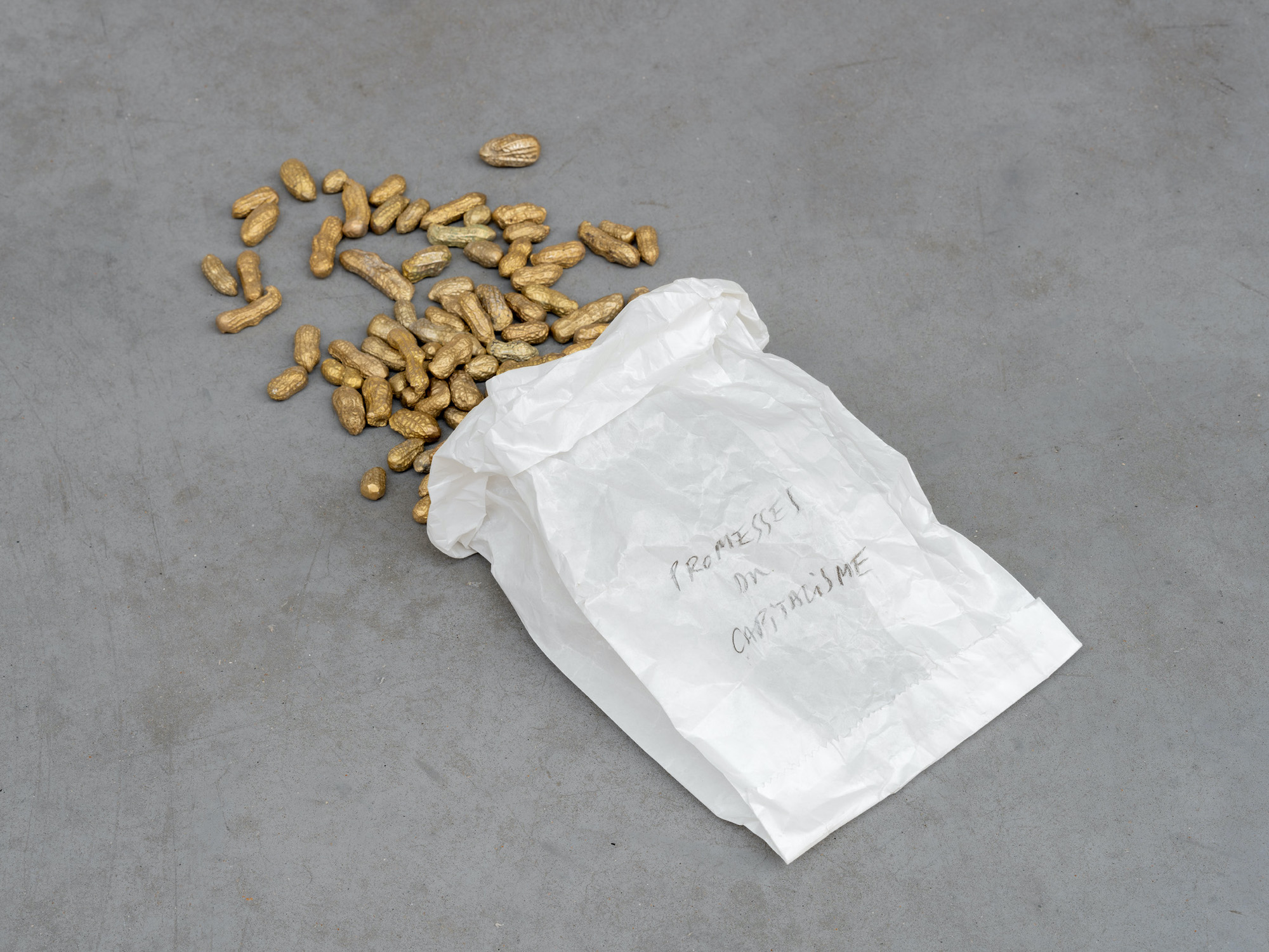 Sara Bjarland, Thorsten Brinkmann, Michel François, atelier lachaert dhanis, Nicolás Lamas, Lucie Lanzini, Mostafa Saifi Rahmouni and Tinus Vermeersch share a common fascination with the craft of materials and with the way a material can lend great beauty to even the most insignificant object. Aside from Michel François and Tinus Vermeersch, who rely more on the idea of the object, they all work intensively with recycled materials. These include everyday utensils and things found in nature – the kind of things we no longer care about or that we forget, abandon or throw away. And all eight artists share, with a little more or a little less straightforwardness, a vision of our society and of the relationship between man and nature that is laced with humour and mockery. By transforming the objects into a poetic and often absurd vision of our world, these artists attempt to expose the pain of our times, but without pointing an accusatory finger. Michel François’ peanuts or Sara Bjarland’s fine branches, Mostafa Saifi Rahmouni’s chunks of bread or Tinus Vermeersch’s hairballs, the pieces from Thorsten Brinkmann and Lucie Lanzini’s studio or Lachaert and Dhanis’ leftover boards: all these – often humble – traces of our lives are transformed, thanks to the artists’ imagination and their translation into bronze, into works with great evocative power. They’re beautiful, tender and ironic.