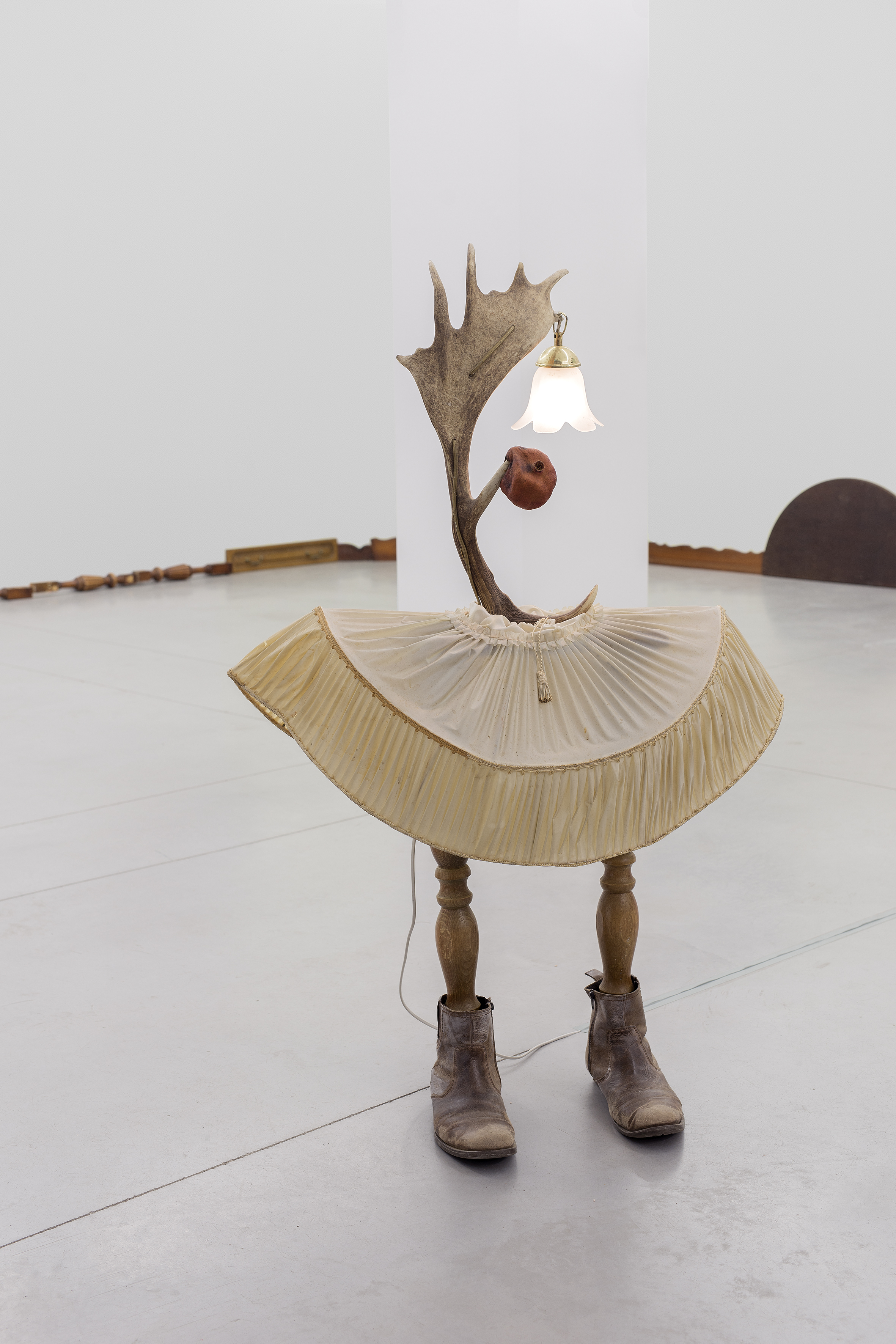 The landscapes and creatures that Hamburg-based artist Thorsten Brinkmann brings together for his second solo exhibition at Hopstreet Gallery in Brussels play in an unusually gloomy way with the classical art forms of still life, landscapes and sculpture. Using items found in flea markets, on rubbish tips or in junkyards, Brinkmann creates nature scenes brimming with atmosphere, spanning genres to harmoniously combine everyday things, furniture parts, containers or vessels to produce a mysterious narrative.